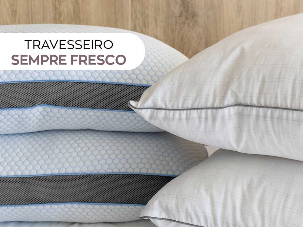 O Travesseiro Sempre Fresco foi desenvolvido para oferecer noites de sono muito mais confortáveis e revigorantes. Seu tecido especial em malha respirável, com toque macio, favorece a circulação de ar e ajuda a manter a sensação de frescor durante toda a noite.