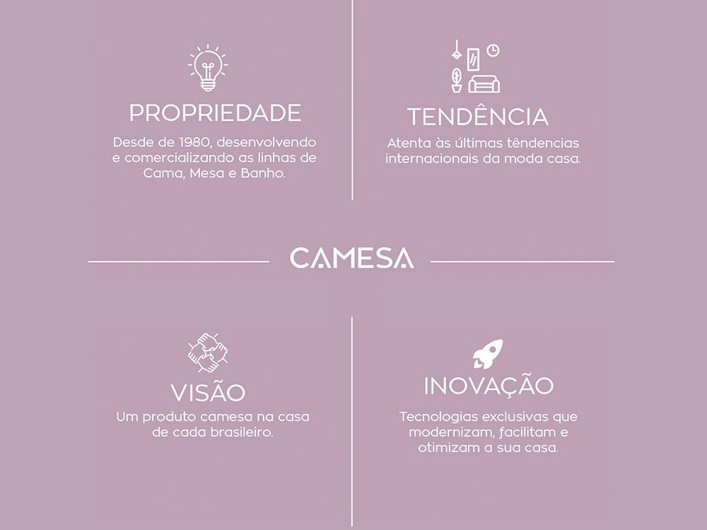 | Diferenciais | Toque macio, leve, textura em relevo, fácil de lavar |